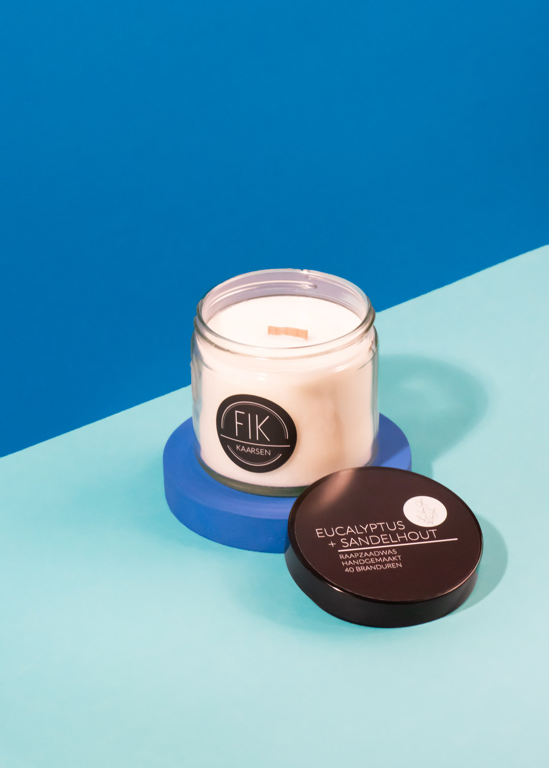 Geurkaars Eucalyptus + Sadelhout houten lont
