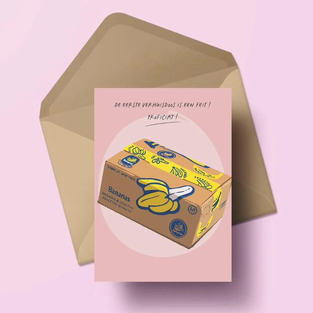 Postkaart de eerste verhuisdoos is een feit – Atelier Moomade.