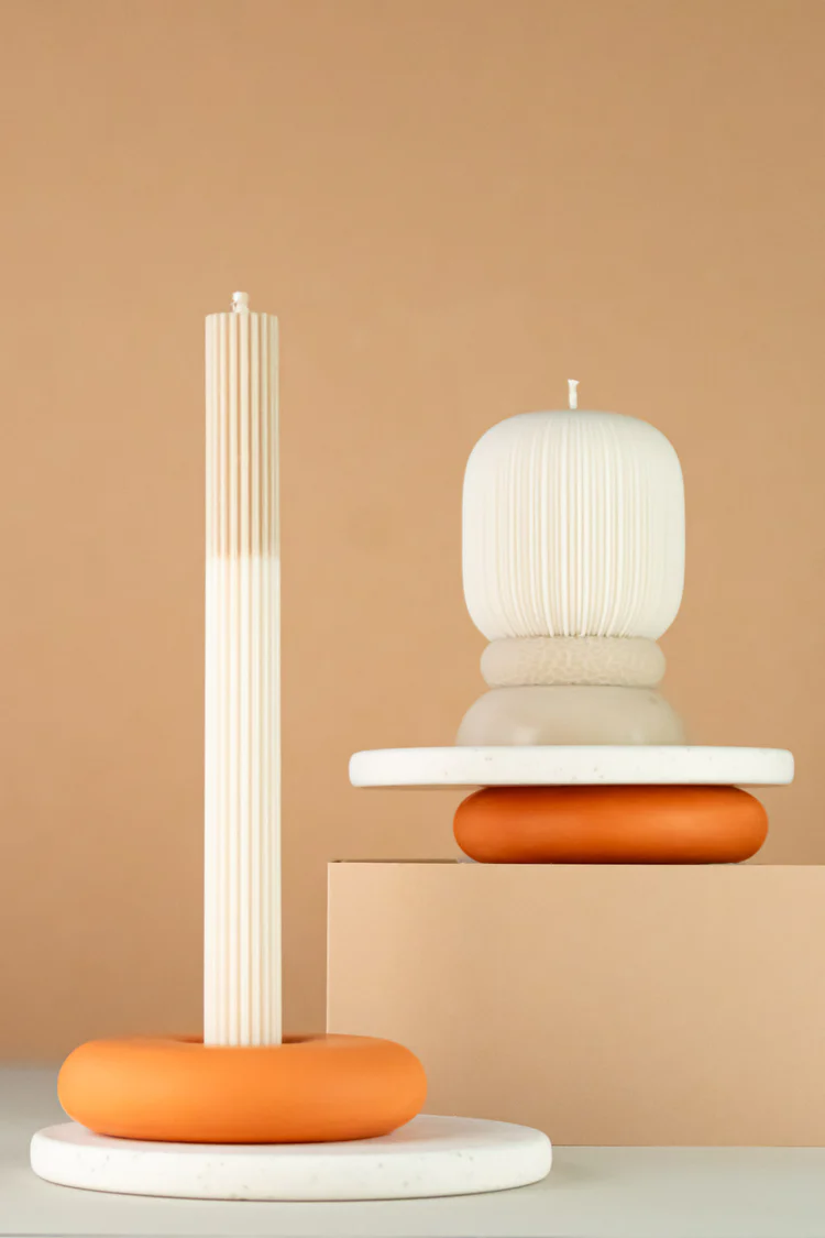 Gebruik de plateau zijde om te combineren met een unieke FIK Sculptuur Kaars en de stijlvol gekleurde kandelaar zijde met een decoratieve FIK Dinerkaars.