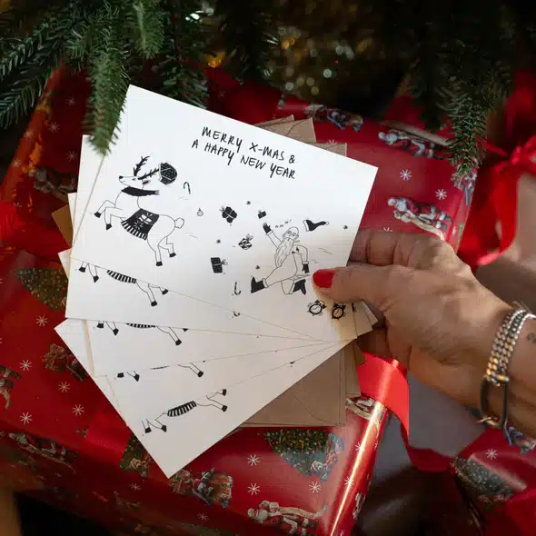 Pakket van 5 postkaarten op wit kwaliteitspapier met illustratie van helen b, inclusief 5 bruine biotop omslagen