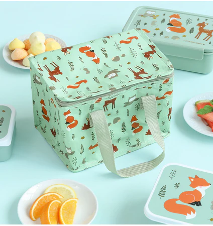 Het stevige koeltasje is perfect om je lunch en drankjes koel te houden. De koeltas biedt genoeg ruimte voor onze snack lunch box , een drinkfles en een stukje fruit. Het koeltasje is gemaakt van gerecycled plastic.