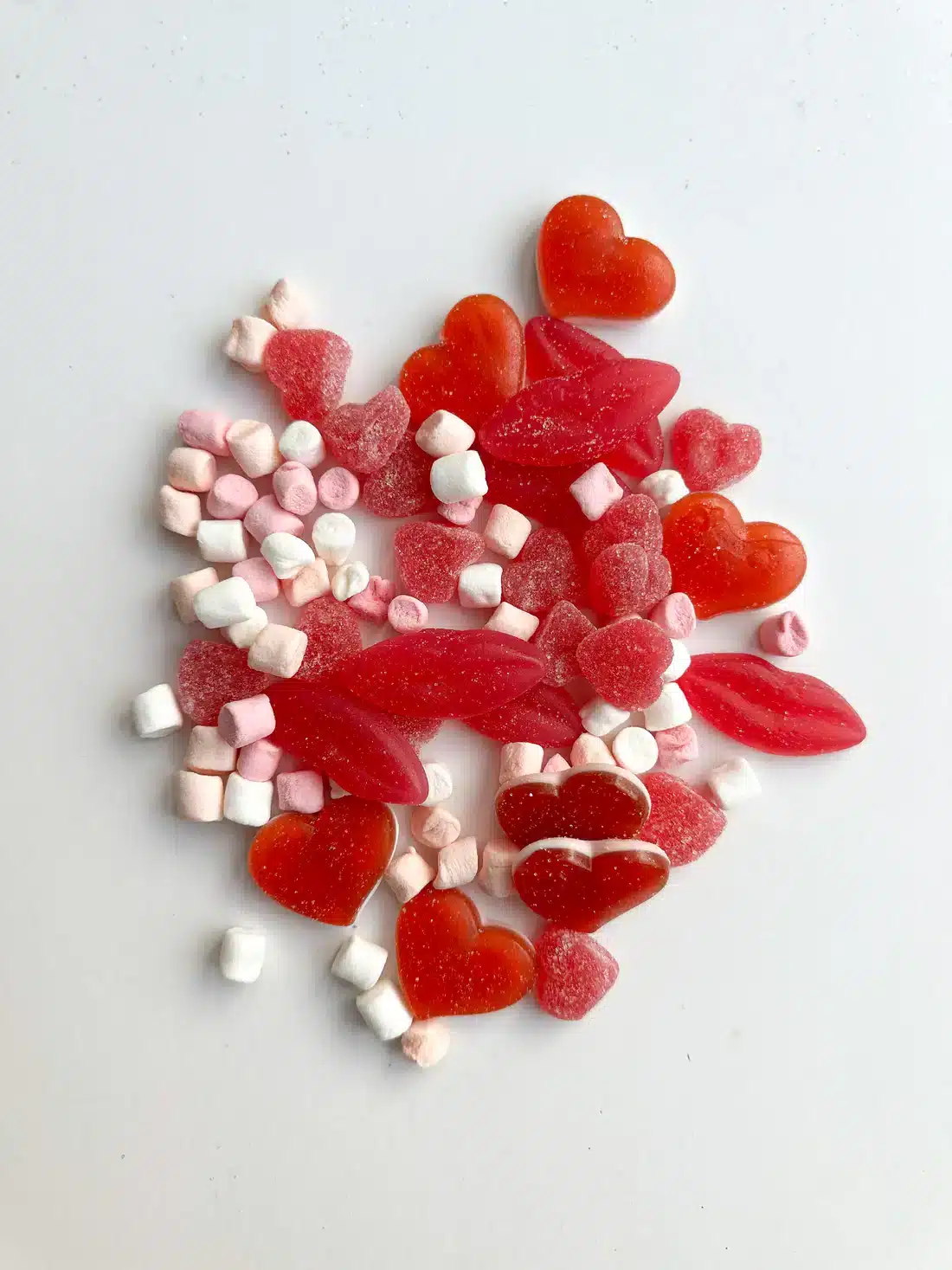 Deze snoepzakjes zitten boordevol met roze en rode hartjes van Haribo en wie vindt dat nou niet heerlijk?