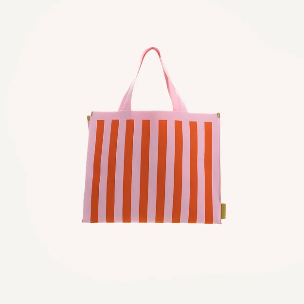 shopper gebreide strepen | dolce pink & arancia orange, Lilac & costa green |